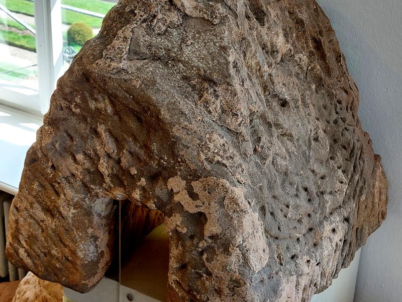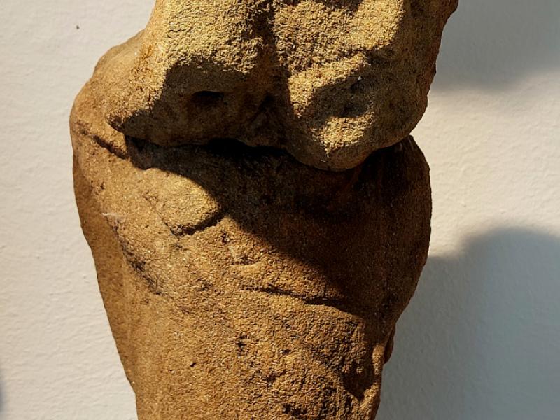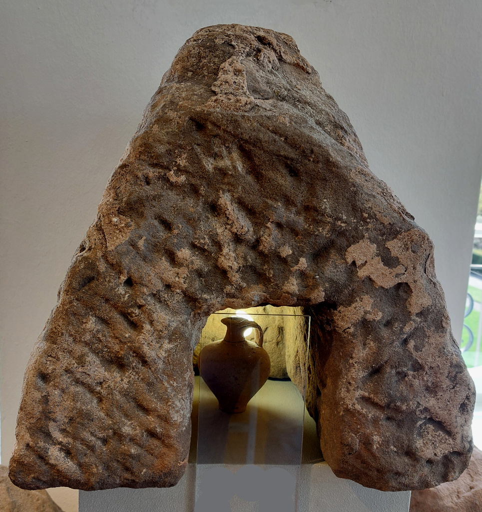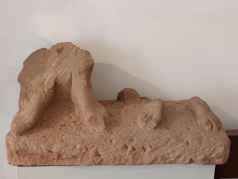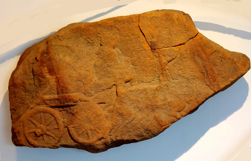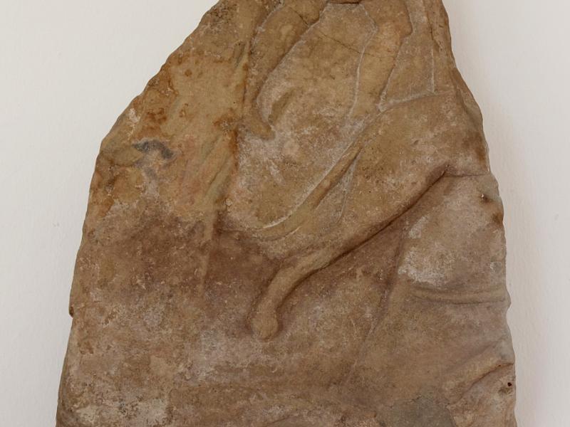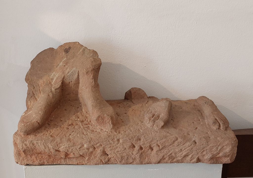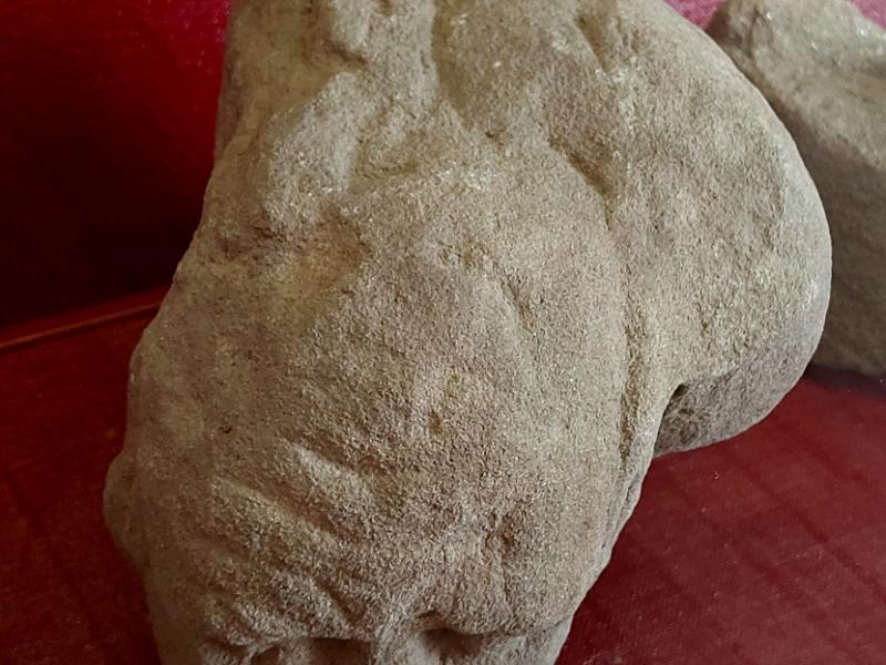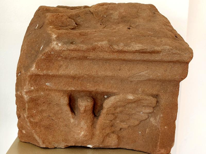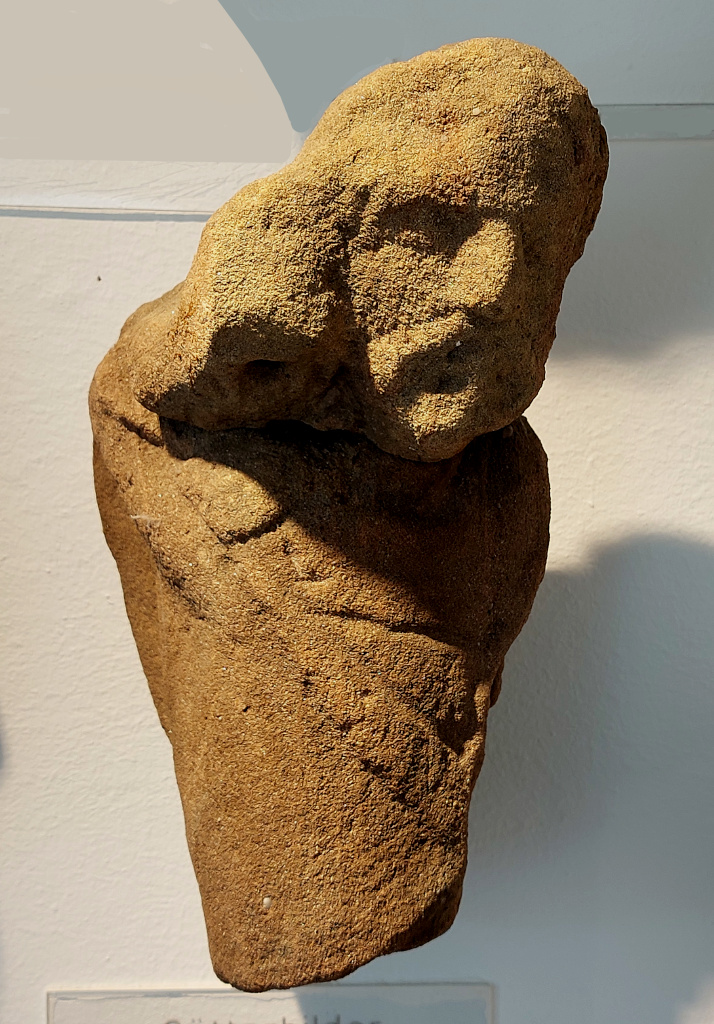 A l’époque romaine, la religion était intimement mêlée à la vie des gens. Bien que les prospections archéologiques n’aient pas encore mis au jour une aire qui soit réservée à ce domaine, la population de Schwarzenacker, comme toute la région, avait adopté le panthéon romain, voire même certaines croyances orientales qui envahissaient peu à peu l’Empire. Le vieux fonds celtique n’avait pour autant pas entièrement disparu. En s’assimilant aux dieux romains, les divinités celtes leur apportaient aussi quelques-unes de leurs qualités. D’autres subsistèrent sous leur propre nom car elles n’avaient pas d’équivalent dans la religion romaine. Ainsi Epona, dont la dévotion touche toute la Gaule. Schwarzenacker en a livré une belle représentation30, ce qui ne saurait surprendre dans un relais routier. La déesse est figurée en bas-relief au sommet d’une stèle grossièrement travaillée à la gradine : elle est assise, de face, avec un cheval de part et d’autre, et tient une corbeille de fruits sur les genoux. Cette iconographie peu commune correspond bien cependant à une divinité à la fois protectrice des voyages et garante de la prospérité.