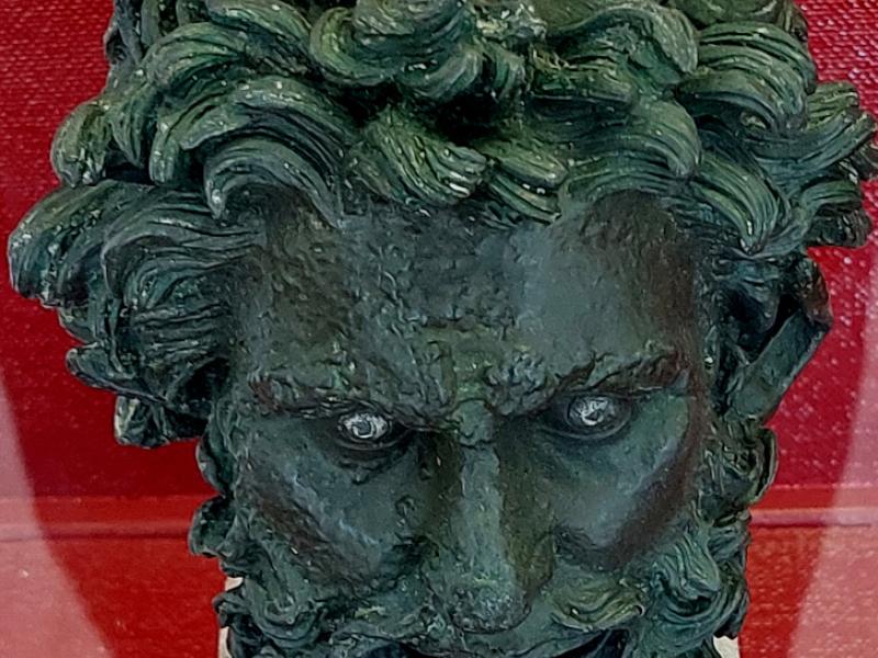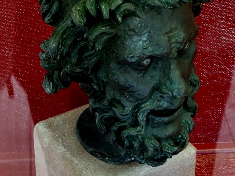 - 31. L’original est exposé dans une vitrine de la Maison à la cave à colonnes. Le musée en propose une copie haute en couleurs qui se rapproche sans doute de la réalité antique.